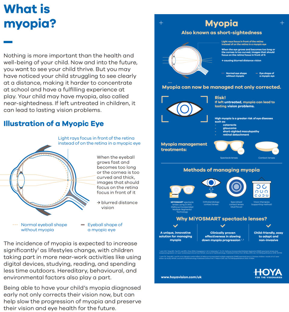 MIYOSMART LENSES: TREATMENT OF MYOPIA IN CHILDRENShort-sightedness, also known as myopia, is a growing problem worldwide. That's why HOYA developed the MiYOSMART lenses. With these innovative glasses, the increasing short-sightedness in children can be treated effectively. The lenses are lightweight, 100% safe and offer maximum UV protection. Eppel Opticians have been accredited by Hoya to fit and depense these lenses.WHAT IS MYOPIA?Have you noticed that your child has trouble seeing clearly at a distance or having trouble concentrating at school? This may indicate nearsightedness (myopia). In this condition, the eyeball is too long or the cornea is too curved. This projects the image in front of the retina instead of on it. This leads to blurred vision in the distance. It is expected that the number of new cases of myopia will increase significantly as our lifestyle changes. Children take a much closer look at things, for example when reading and using computers, tablets and smartphones. They also spend less time outdoors, and genetic, behavioral, and environmental factors play a role in the development of myopia.THE REVOLUTIONARY HOYA MIYOSMART LENSES WITH DIMS TECHNOLOGYDue to the rapidly increasing number of people with myopia and the increase in severe myopia, HOYA has developed DIMS technology together with Hong Kong Polytechnic University*. Scientific research confirms that the increase in myopia can be slowed down by ensuring constant myopic defocus while maintaining sharp vision. HOYA MiYOSMART lenses feature this technology. These are single vision lenses with almost 400 practically invisible defocus segments on the front surface. The required distance power is located between the segments and in the middle part of the lenses. This gives the eye the myopic defocus and required distance power at the same time. The result is sharp vision and an inhibition of myopia.